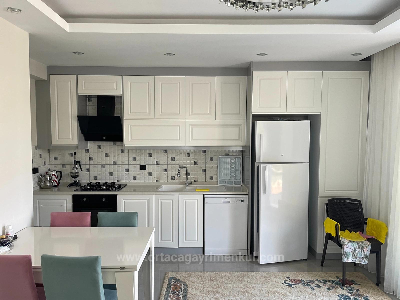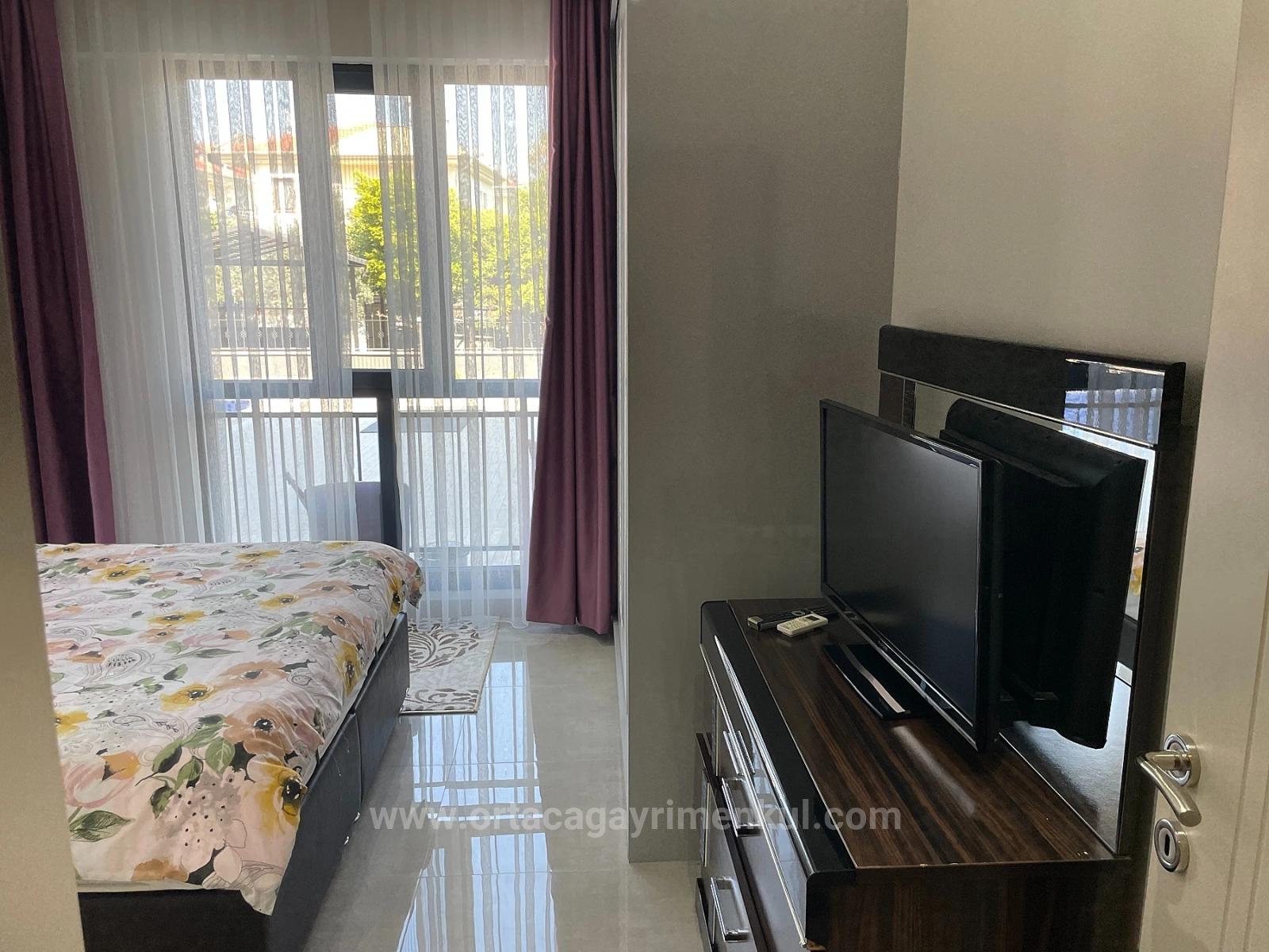 In einem Gebäude mit insgesamt 8 Wohneinheiten auf einem 1000 m² großen Grundstück im Zentrum von Dalyan steht eine Erdgeschosswohnung zum Verkauf. Die Wohnung verfügt über 2 Schlafzimmer, 1 Wohnzimmer mit offener Küche und 1 Badezimmer mit einer Wohnfläche von insgesamt 75 m². Sie ist komplett möbliert. Das Gebäude ist neu und renovierungsbedürftig. Zur Anlage gehört ein Gemeinschaftspool. Einkaufsmöglichkeiten und Supermärkte sind fußläufig erreichbar. Die Wohnung liegt 10 km vom Strand Iztuzu und 25 km vom Flughafen entfernt. Der Preis beträgt 210.000 Euro.