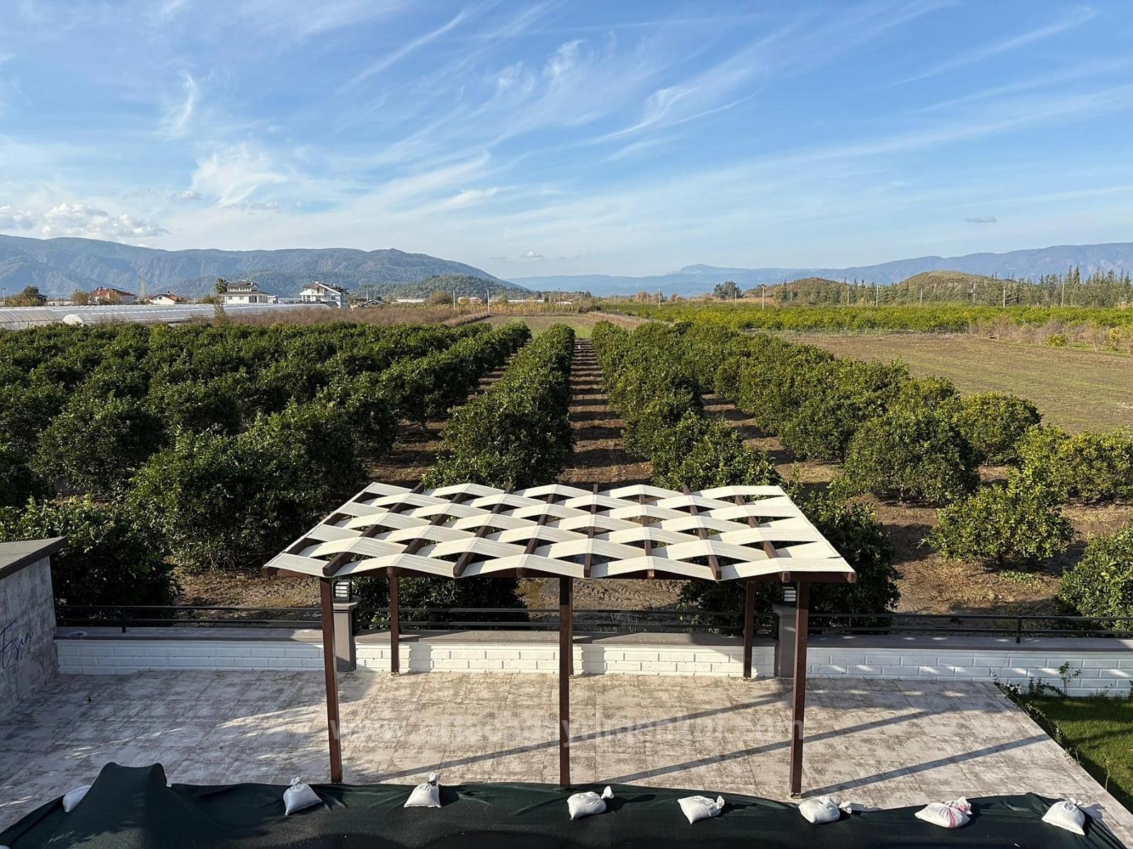 Auf dem gesamten Grundstück sind Orangenbäume angepflanzt. Ein tiefer artesischer Brunnen steht zur Bewässerung zur Verfügung. Die Villa liegt 4 km vom Zentrum von Dalyan, 15 km vom Strand von Iztuzu, 2 km von Einkaufsmöglichkeiten und 25 km vom Flughafen Dalaman entfernt und bietet einen herrlichen Blick auf Natur und Wald. Preis: 39.000.000 TL