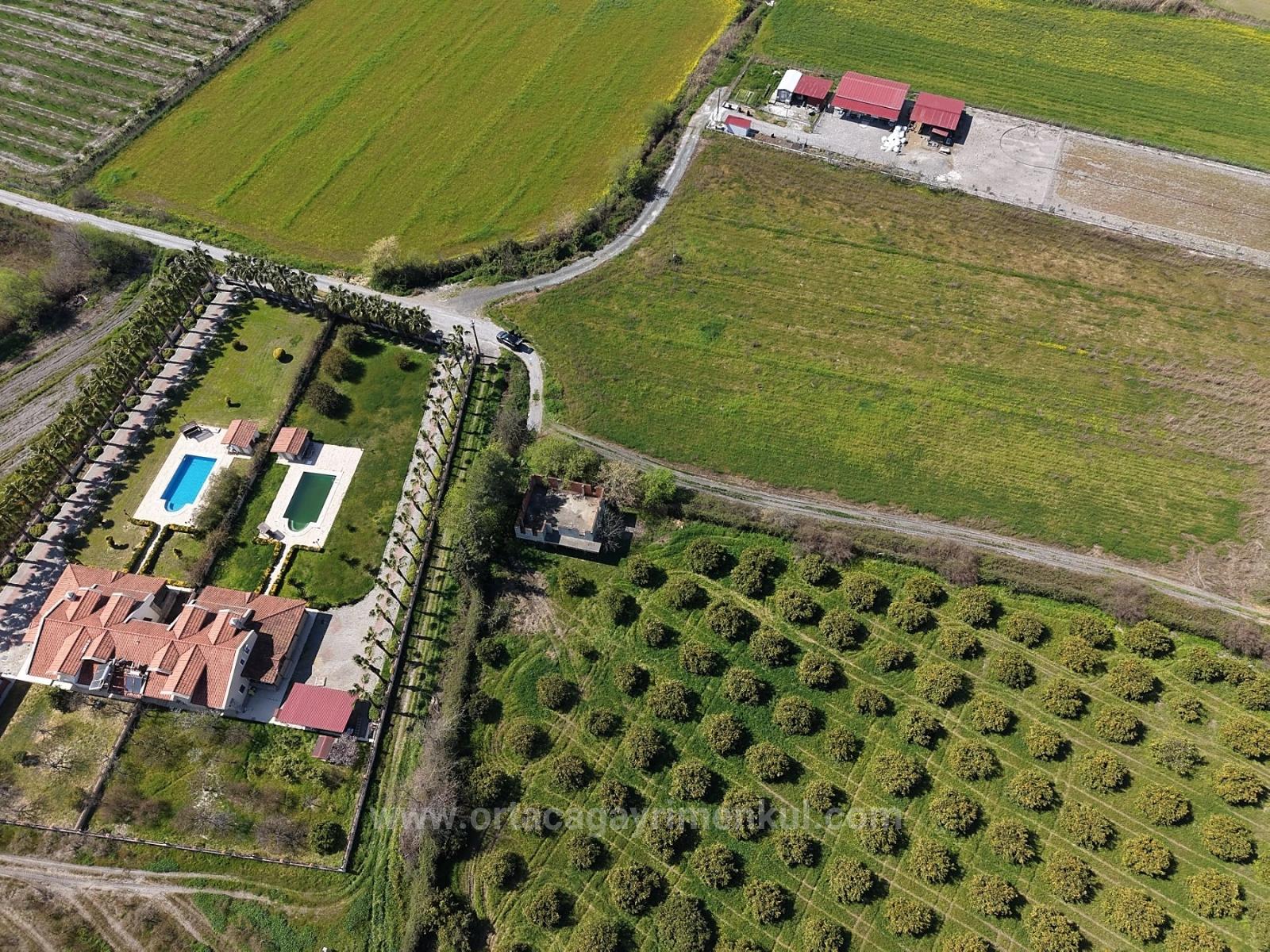 17.550m2 citrus garden close to Dalyan center is for sale. There is a building with building registration certificate of approximately 200m2. There are no road, water, electricity or telephone problems. Annual fruit yield is close to 60-70 tons. There are constructions around it. It can be arranged with a building renovation permit. The price of the garden, which is 2 km from Dalyan center, 12 km from Iztuzu Beach and 25 km from the airport: 1,650,000 Dollars