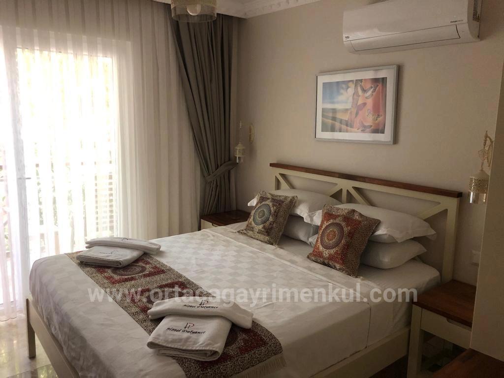 Boutique hotel in Dalyan Gülpınar, within walking distance of the canal, on a 1400 m2 land with three sides of the road, is for sale. Built in a modern structure, the boutique hotel has 17 rooms. It has a 150 m2 open and 150 m2 indoor restaurant. It has underfloor heating and central heating. The pool is a salt system and there is a terrace by the pool for sunbathing. The garden has been integrated with the architecture of the hotel, whose landscaping has been completed using lush green trees and flowers. It is tourism certified. There is a cold storage in the kitchen. There is a special generator for the facility. Price: 2,000,000€