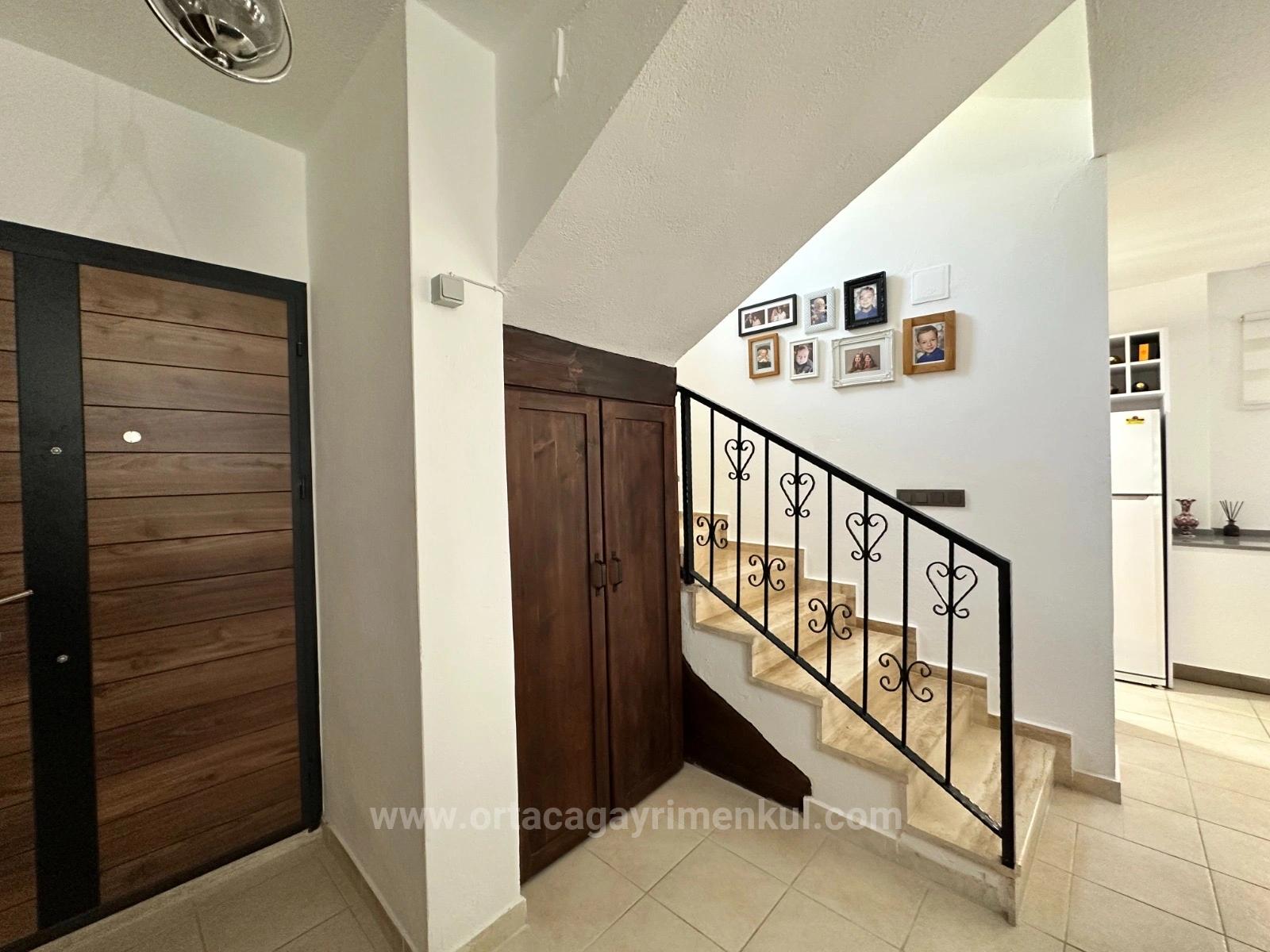 When you step inside, it is immediately felt that this house was designed with comfort and easy living in mind. The ground floor welcomes you with a contemporary open plan layout; The newly built modern kitchen stands out as the stylish heart of the house. Equipped with thoughtful details such as a spice rack with smart drawers and a deep utility cabinet, the kitchen appeals to those who care about both functionality and design. The adjacent seating area offers a seamless transition to the elegantly extended and glass-enclosed front terrace. This section, which was once just an outdoor seating area, has now turned into a versatile, spacious and bright room that can be used in all four seasons; It offers an ideal living space, whether as an additional lounge, a reading corner, or to host guests at sunset.