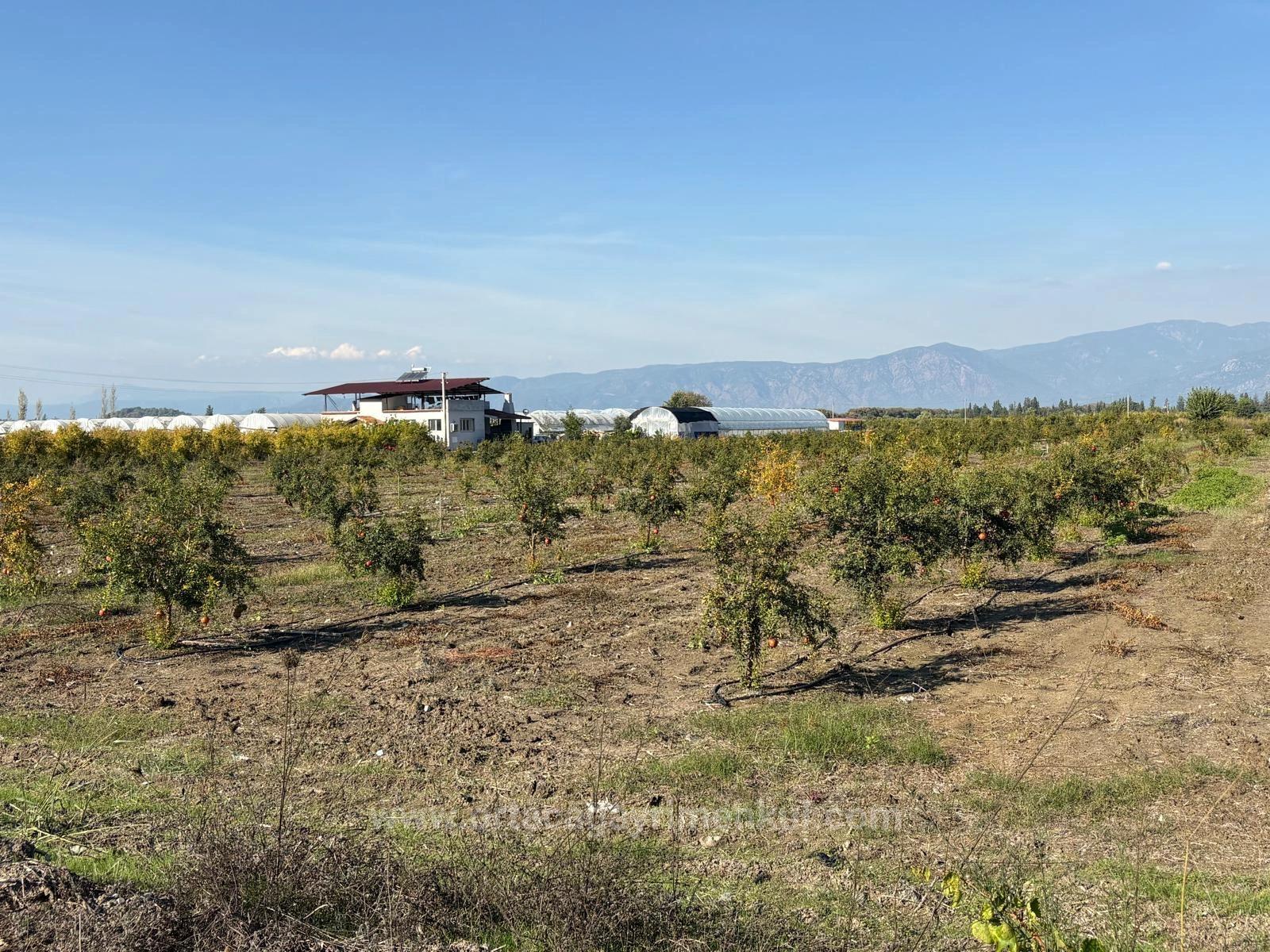 В Эскикёе продаётся участок общей площадью 21 500 м2, состоящий из двух смежных участков площадью 11 262 + 10 238 м2. На участке растут двухлетние гранатовые деревья. Нет проблем с дорогой, водой, электричеством и телефонной связью. На участке есть электричество и глубокая артезианская скважина. Система орошения капельная. К участку проложена кадастровая дорога. Вокруг расположены населённые пункты. Стоимость участка, расположенного в 3 км от Даляна, в 10 км от Ортаджи, в 13 км от пляжа Изтузу и в 25 км от аэропорта: 37 500 000 турецких лир