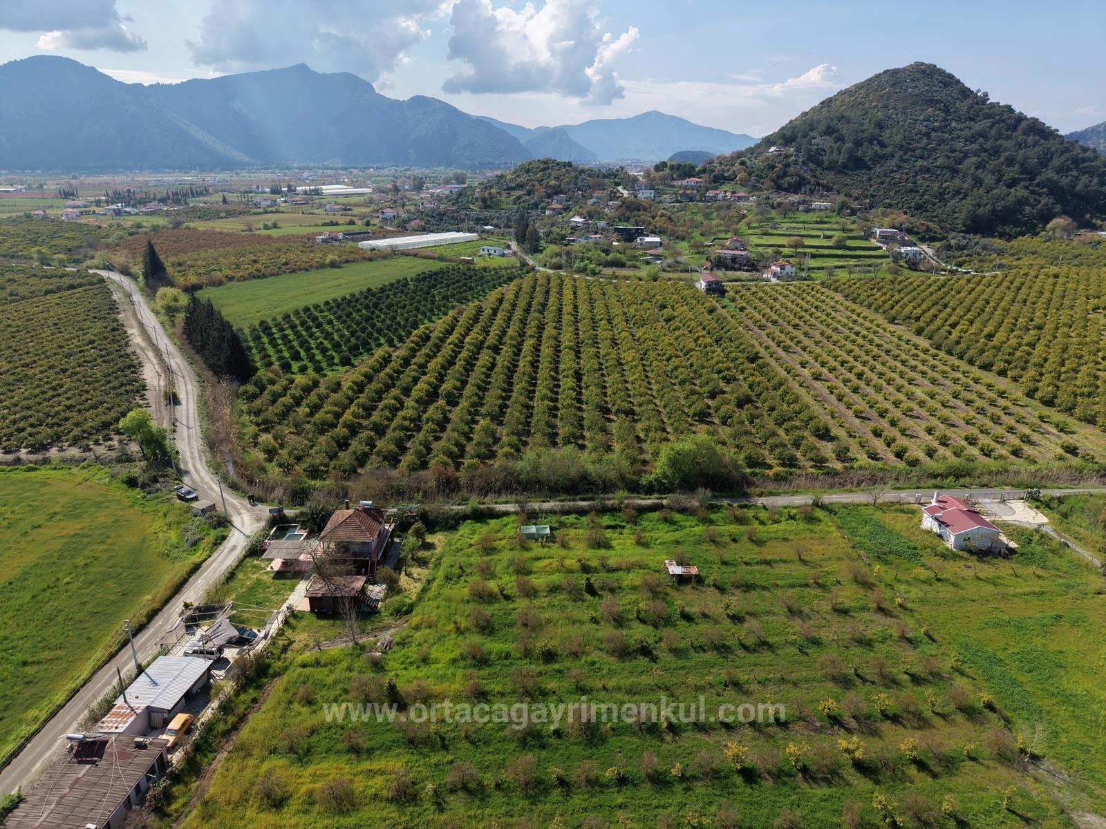 На участке земли площадью 11 000 м2 в Эскикёе расположен туристический деревянный комплекс. Он включает в себя открытый бассейн, зону регистрации у входа, двухэтажный деревянный дом и два одноэтажных деревянных дома. Задняя часть участка обращена на юг и граничит с лесом. На территории растут лимонные и гранатовые деревья. Имеются два глубоких колодца с насосами для орошения. Проблем с подъездными путями, водоснабжением, электричеством и телефонной связью нет. Расположенный в 2,5 км от центра Дальяна, в 12 км от пляжа Истузу и в 25 км от аэропорта, комплекс предлагает виды на природу и лес. Цена: 1 050 000 долларов США