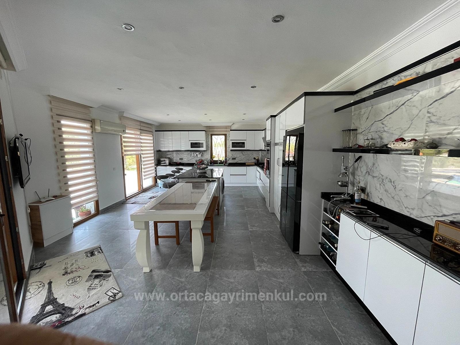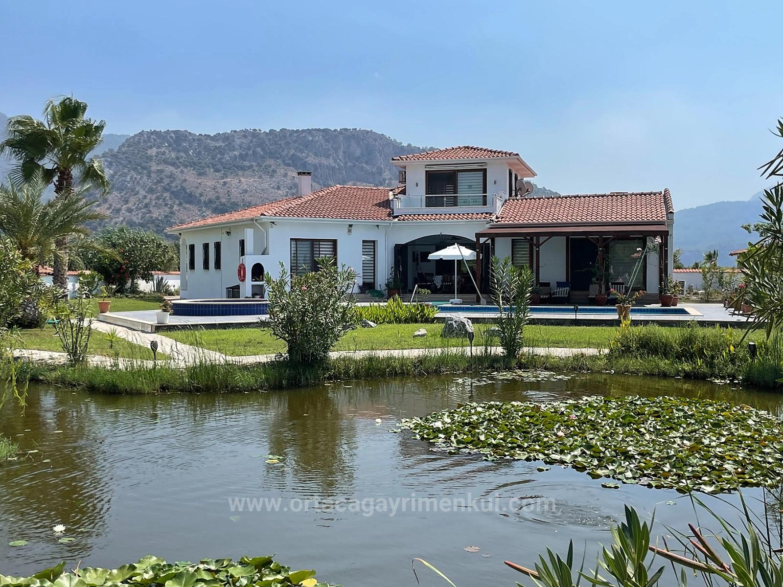 Расположенная на участке площадью 7000 м2 на дороге к пляжу Истузу в Даляне, эта вилла располагает 4 спальнями, гостиной с камином и кухней, 4 ванными комнатами, полностью меблирована, отремонтирована и оборудована кондиционерами в каждой комнате. Вся бытовая техника новая. Вилла имеет собственный открытый бассейн с системой соленой воды и искусственный пруд с рыбами перед виллой. Сад благоустроен, есть барная стойка и беседка. Вилла имеет балкон и террасу. Дополнительные расходы отсутствуют. Она находится в 5 минутах от магазинов и рынка, в 8 км от пляжа Истузу и в 25 км от аэропорта. Из виллы открывается вид на Истузу и гробницы царей. Цена: 1 100 000 GBP