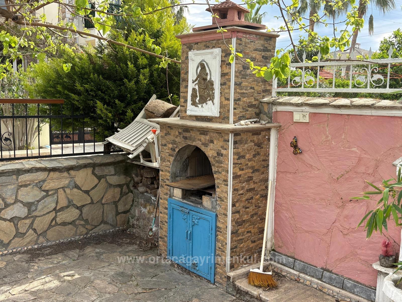 Dalyan Gülpınar'da 500m2 arsa içerisinde 3 yatak odalı, 1 bağımsız mutfak, 2 banyolu ve salon olan villa satılıktır. Müstakil açık yüzme havuzludur. Bahçesinde barbekü alanı ve çeşitli meyve ağaçları bulunmaktadır. Full eşyalıdır. Alışveriş marketlerine ve semt pazarına yürüme mesafesindedir. İztuzu Plaj'ına 10km, havaalanına 25km mesafesi olan villa doğa ve orman manzaralıdır. Fiyatı: 18.500.000 TL
